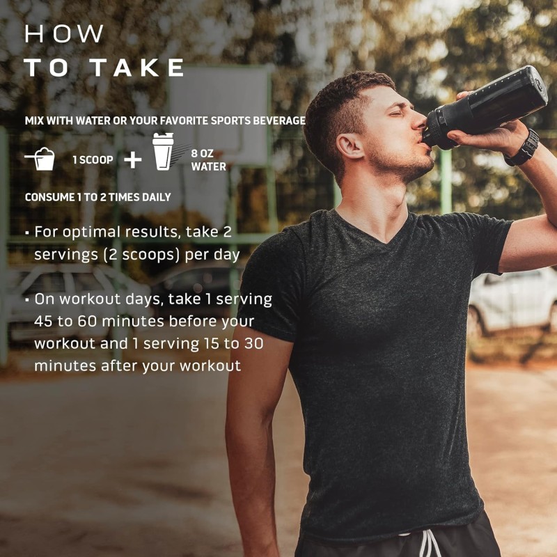 Mélange 1 dosette (5g) avec 230 ml d'eau dans un shaker. À consommer 1 à 2 fois par jour.