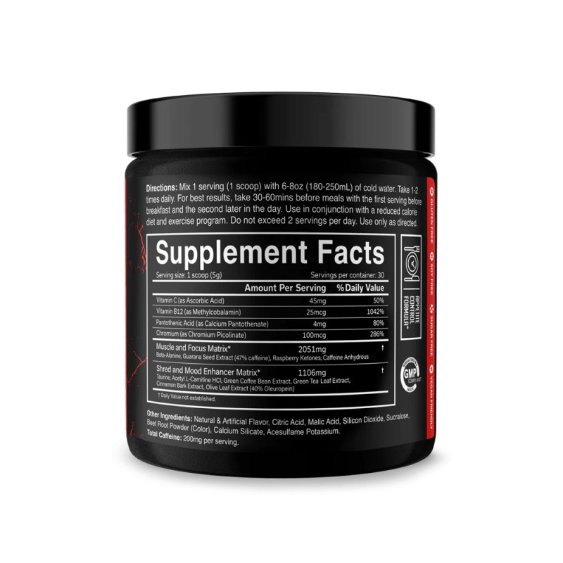 Le Ripper est l'un des brûleurs de graisse les plus efficaces et les plus rapides au monde. Cobra Labs a conçu un mélange concentré d'ingrédients puissants pour un entrainement efficace et une force immédiate. Cette formule à action rapide de Ripper est conçue non seulement pour brûler les graisses, mais aussi pour aider à contrôler l'appétit, tout en fournissant un maximum d'énergie pour vous permettre de performer à votre maximum toute la journée.