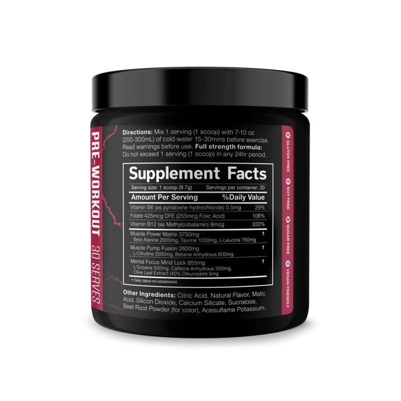 Shadow X est l’un des compléments de pré entrainement les plus efficaces au monde. Sa structure puissante et concentrée est spécialement conçue pour les athlètes à la recherche d’un produit énergétique pour augmenter les performances lors des exercices de haut niveau. Ce produit contient de la bêta-alanine pour augmenter la force et du Citruline , qui fournit aux muscles des éléments nutritifs et permet une meilleure congestion et de la caféine pour augmenter votre concentration, ainsi que des acides aminés comme Taurine et Leucine pour accélérer la récupération musculaire et réduire la fatigue .Shawdow X est riche aide au processus d'hydratation des cellules et des fibres musculaires et contient des vitamines, notamment B6 et B12, qui contribuent à la performance du système nerveux et à une meilleure division de protéines. Contrairement à d’autres produits pré entrainement Shadow X ne contient pas de créatine.