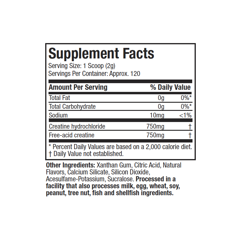 - Créatine HCL et sans acide