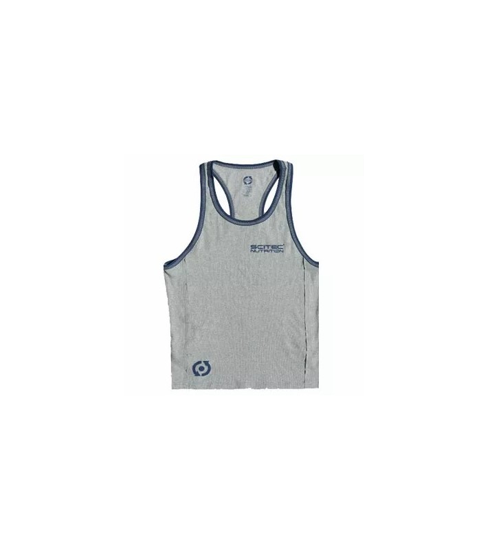 Scitec Side Star Tank Top tout nouveau débardeur avec un design unique, produit dans des finitions de couleur grise et bleue et avec le logo Scitec Nutriotion.