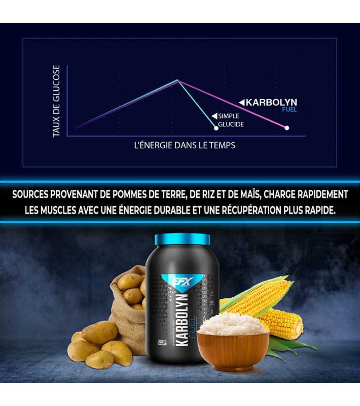 Inventé par le Dr Jeff Golini, spécialiste des sports EFX karbolyn est un mélange de glucides simples et complexes pour accompagner les professionnels .